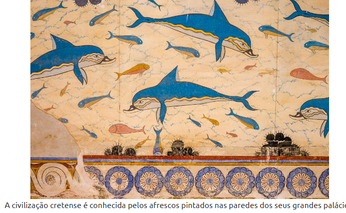 A civilização cretense é conhecida pelos afrescos pintados nas paredes dos seus grandes palácios.